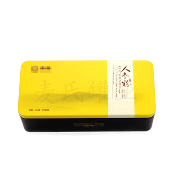此款丹參粉鐵皮盒,由復合式內塞蓋組成,扣底結構。蓋型為長方形鐵盒,外過水性亮光油、內涂透明油。該款鐵盒還適合裝其他不同類型的中藥材、醫藥、保健品,還可以根據客戶的產品版面要求進行設計。