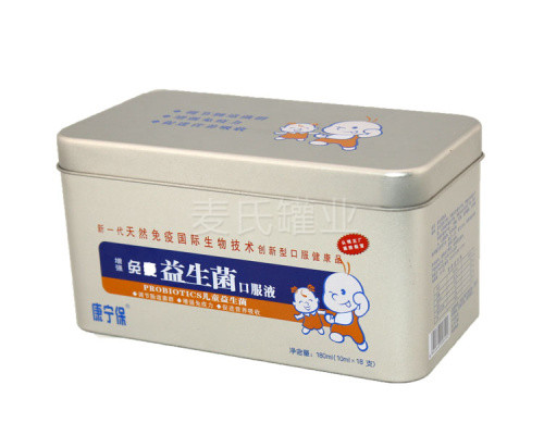 這款口服液鐵盒,采用進口0..25mm厚度的鍍錫馬口鐵盒精心打造而成,鐵盒為四色專版印刷,蓋子為外卷線天地蓋,內(nèi)外過上水性透明光油,鐵盒質(zhì)地高亮鮮明。而的鍍錫馬口鐵,能防止醫(yī)藥保健產(chǎn)品受潮融化或受力壓碎等不良現(xiàn)象的發(fā)生。