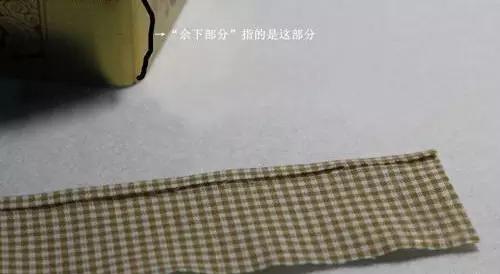 2、盒邊布條的制作:尺寸為盒子蓋上蓋子后,剩余部分長度再加7mm,然后折進7mm,用熨斗熨平備用。