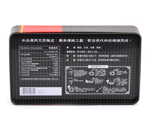 新款山東阿膠鐵皮盒子,鹿角膠馬口鐵盒,明亮的顏色,經(jīng)典的形狀,而不失大氣,簡單時(shí)尚,此款鐵盒包裝阿膠再適合不過,然而,不僅可以提高產(chǎn)品的品位,更能增加贈(zèng)送方的面子。