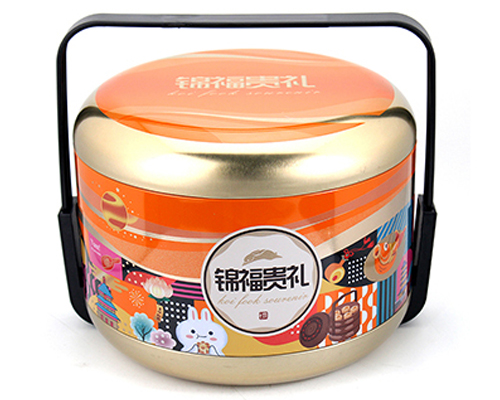 此款食品月餅空鐵盒包裝為單面CMYK四色印刷處理,外過水性亮光油,內涂金油,過油目的不僅能提高鐵罐整體效果,具有強烈的金屬質感外,還對鐵盒印刷面形成一層致密的保護膜,對鐵罐刮花、防銹起到一定的防護作用。除了過光油、透明油外,客戶還可選擇過皺紋油、珠光油、爆炸油等。